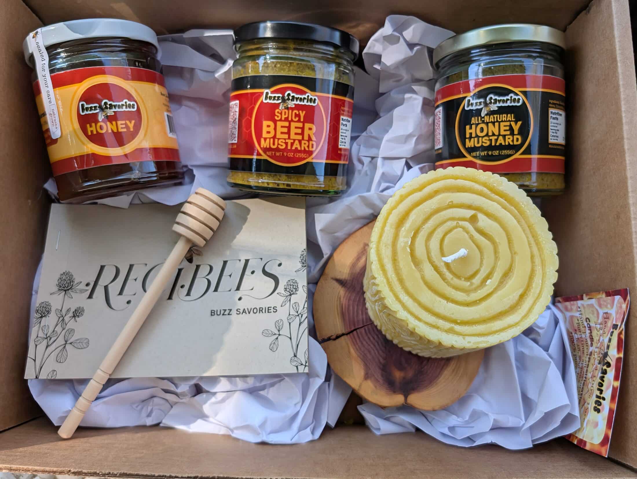 You’ll find gift sets or design your own. See the Buzz Savories Spicy Beer Mustard, Honey Mustard, and Honey and hand-poured beeswax candles and gift sets in the Buy Nebraska story and Buy Nebraska online. Shop any of our products or select from our 3 gift sets here: https://buynebraska.com/collections/buzz-savories-llc?srsltid=AfmBOoofkwXo0H4utuYJVugIis9Lixu5HCa7mXehS2rlLhwlhC1nnfr5