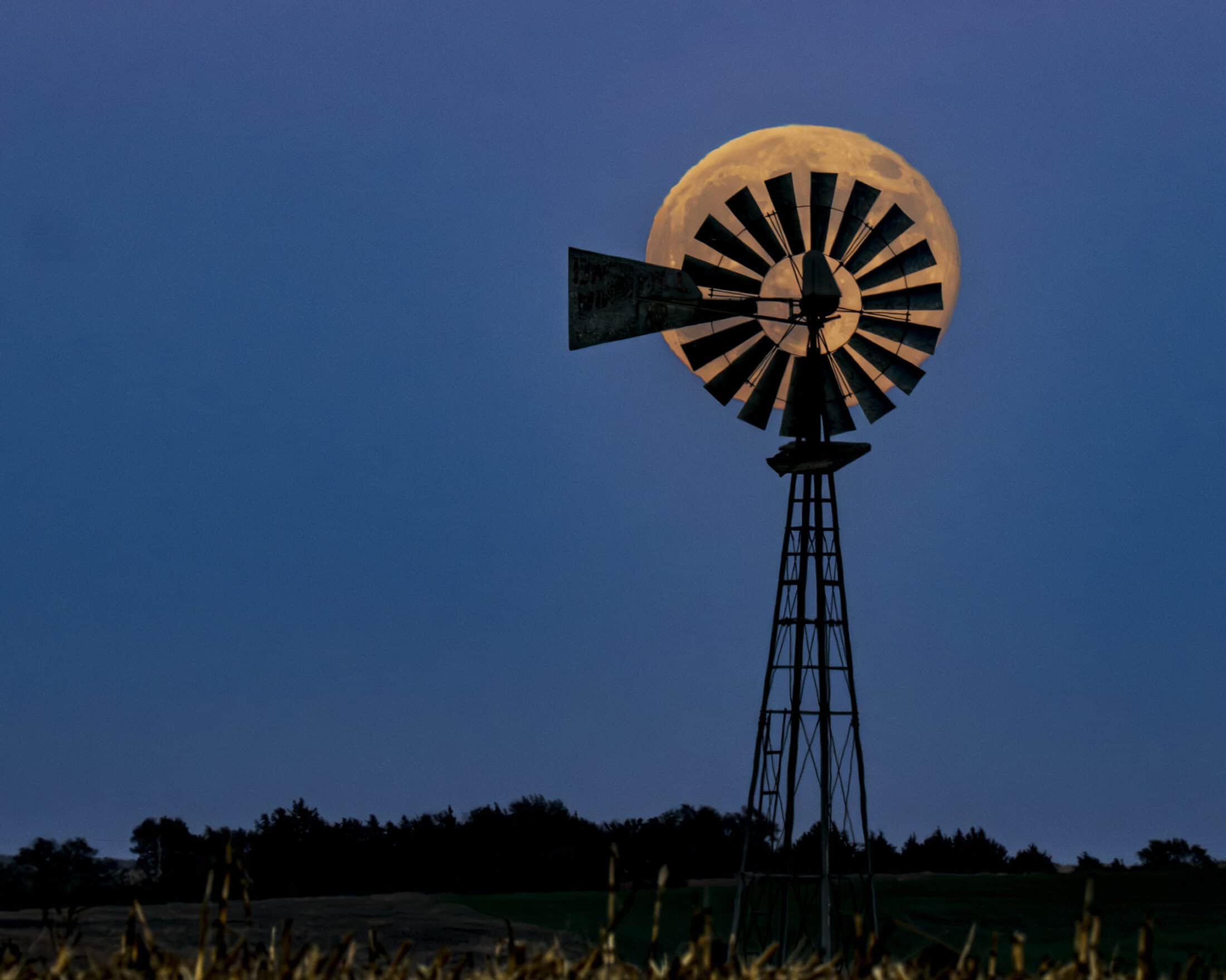 And this is how Don arrived at the photo we see of the harvest moon shining precisely behind the windmill.
