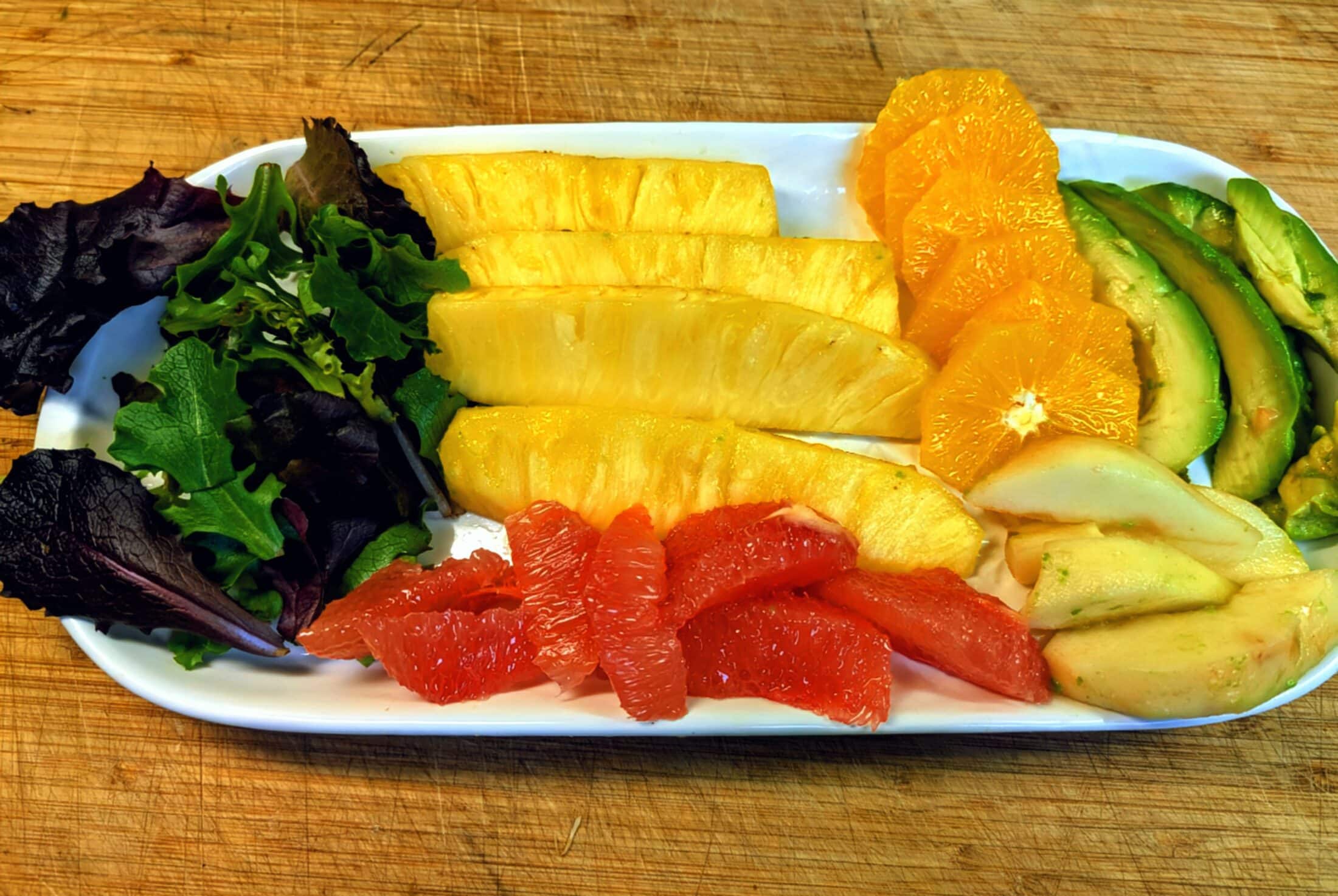 I count on citrus fruits to calm the vagaries of March. Grapefruits and oranges say, “We are here for you, and we are packed with nutrients, and we taste fresh.” I listen to their call, select 3 or 4 plus a banana, and I create a bright, flavorful salad. The 4 Ingredient Citrus Salad Dressing compliments the Citrus and refreshes my taste buds and my being. Buzz Savories local honey adds quality and interest and lifts the dressing out of uninspired and into refreshing.