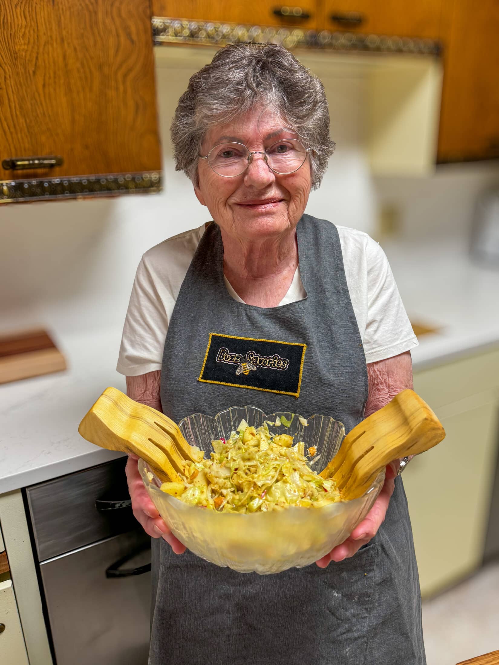 I like Chop Salads for their ease of preparation and the flavors that small chunks of vegetables combined with the quality Buzz Savories Chopped Salad Dressing delivers to us hungry for fresh foods following the winter months and a sparsity of wholesome vegetables in our grocery stores, This sald, Crunchy Chop Spring Salad offers a bonus for eating well in April.